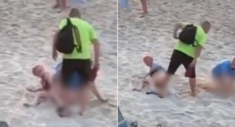 O banhista pega o chinelo e bate várias vezes no homem, que se levanta e deixa o local cambaleando, aparentemente bêbado. Mais tarde, ele foi detido e levado para uma detenção pública.