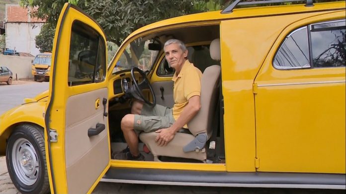 Amarelo e chamativo, o fusquinha de R$ 2,8 mil foi transformado em uma “limousine” que hoje é avaliada em mais de R$ 50 mil. Seu Lúcio contou que já recebeu ofertas, mas não quer saber de vender.