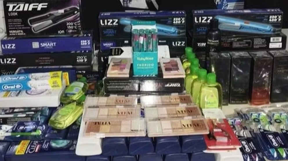 Os objetos foram encontrados com os suspeitos, entre eles, pranchas alisadoras, escovas, presilhas de cabelo, perfumes, itens de higiene, maquiagens e roupas íntimas. Material foi reconhecido pelos funcionários do estabelecimento.